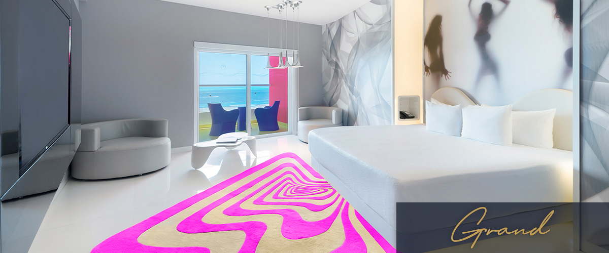 Te damos la bienvenida a nuestras espectaculares suites ubicadas en la sección central de The Tower, en los niveles superiores. Disfruta el confort de una sala de estar con televisión LED, un gran balcón con jacuzzi para dos y una sala de estar al aire libre. Incluyen servicio de concierge en la piscina y la playa.