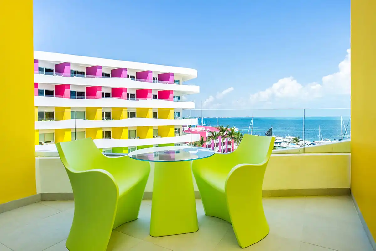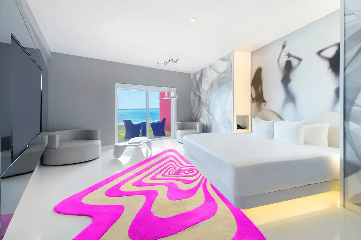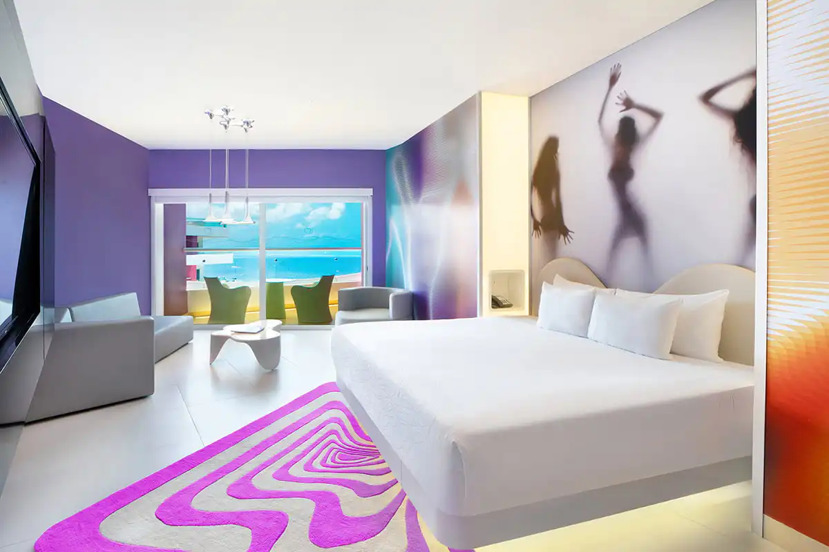 Ofrece un espacioso balcón con impresionante vista a la Sexy Pool y el mar Caribe. Cuenta con una sala de estar con televisión LED de 48’’, servicio de concierge en la playa y la piscina, y un baño completo con inodoro separado, dos lavabos y una espectacular regadera. Incluye una botella de vino espumoso de bienvenida.