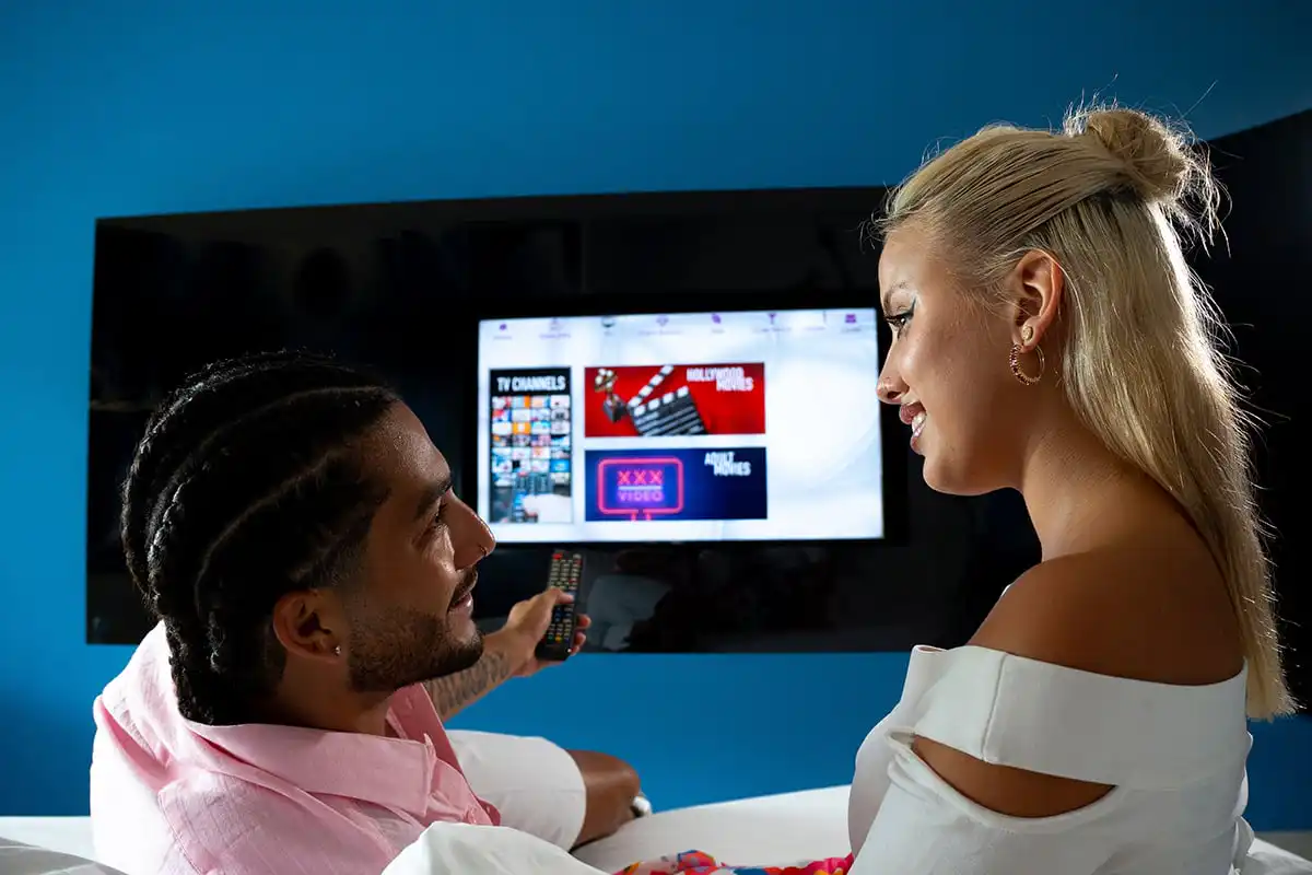 - Exclusivo menú de servicio a la habitación y canales de TV para adultos
