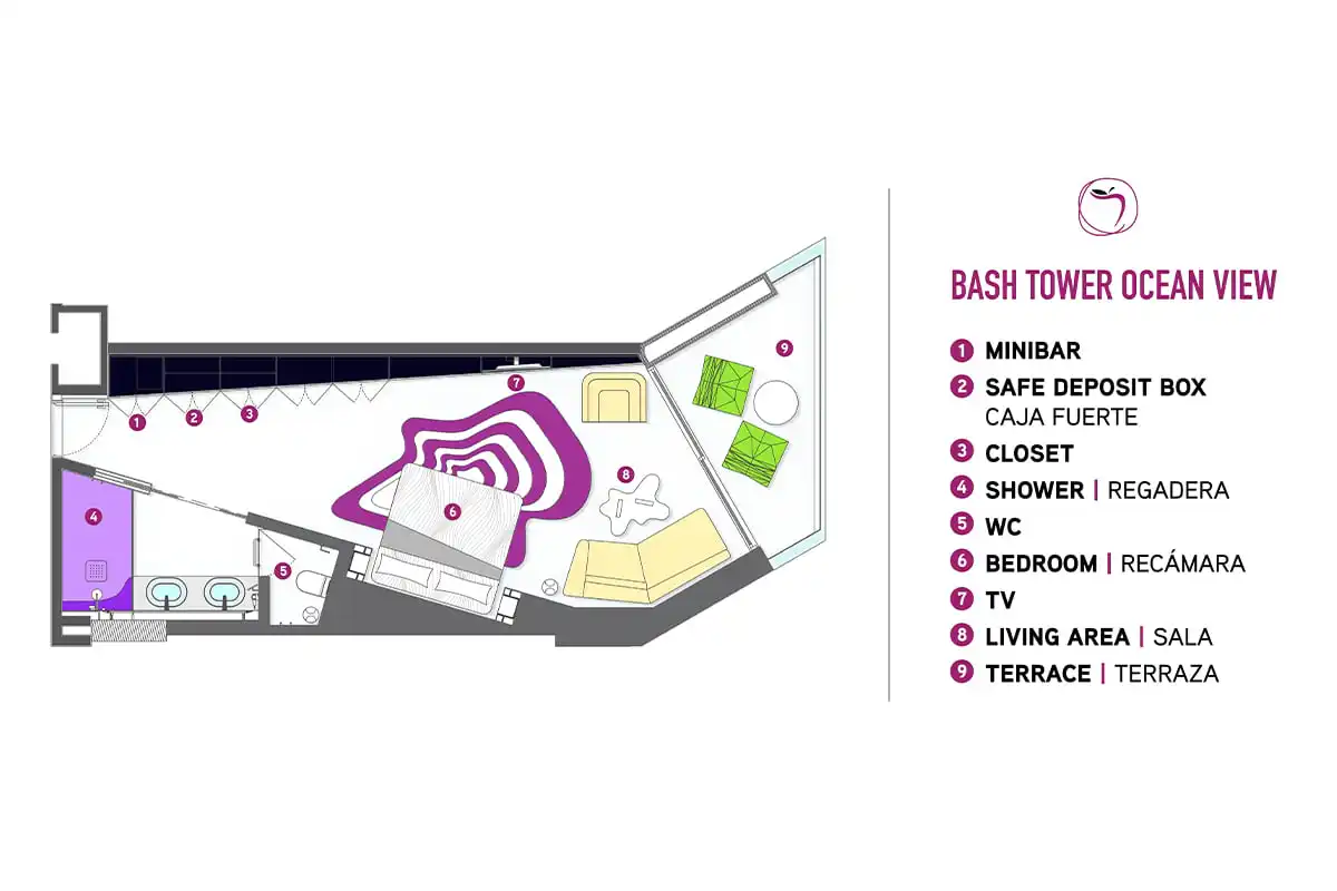 Incluyen amenidades, obsequios y servicios exclusivos. Disfruta de un amplio balcón, sala de estar con televisión LED, cafetera Nespresso, y baño con inodoro independiente, dos lavabos y regadera tipo lluvia. Ofrece servicio de concierge en la piscina y playa.