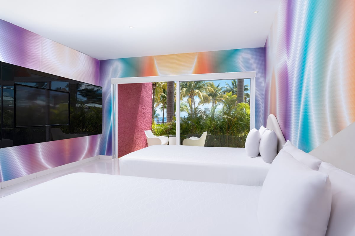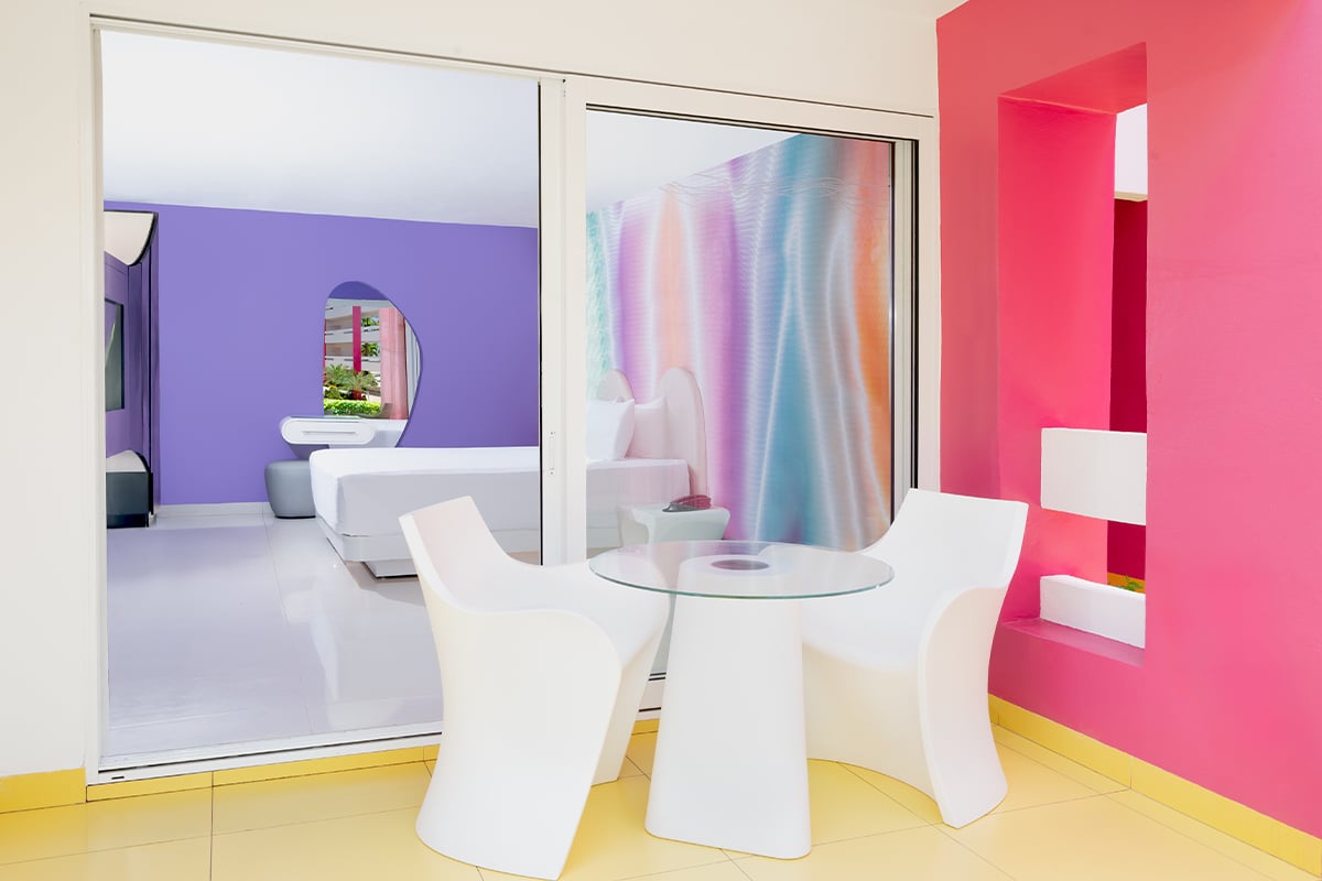 These rooms overlooking the Sexy Pool have a spacious balcony, living area with LED TV, and a bathroom with separate toilet, two sinks, and a spectacular rain shower. Pool and beach concierge service available for this category.