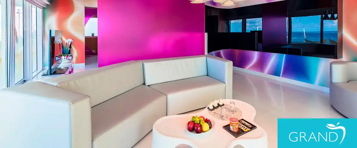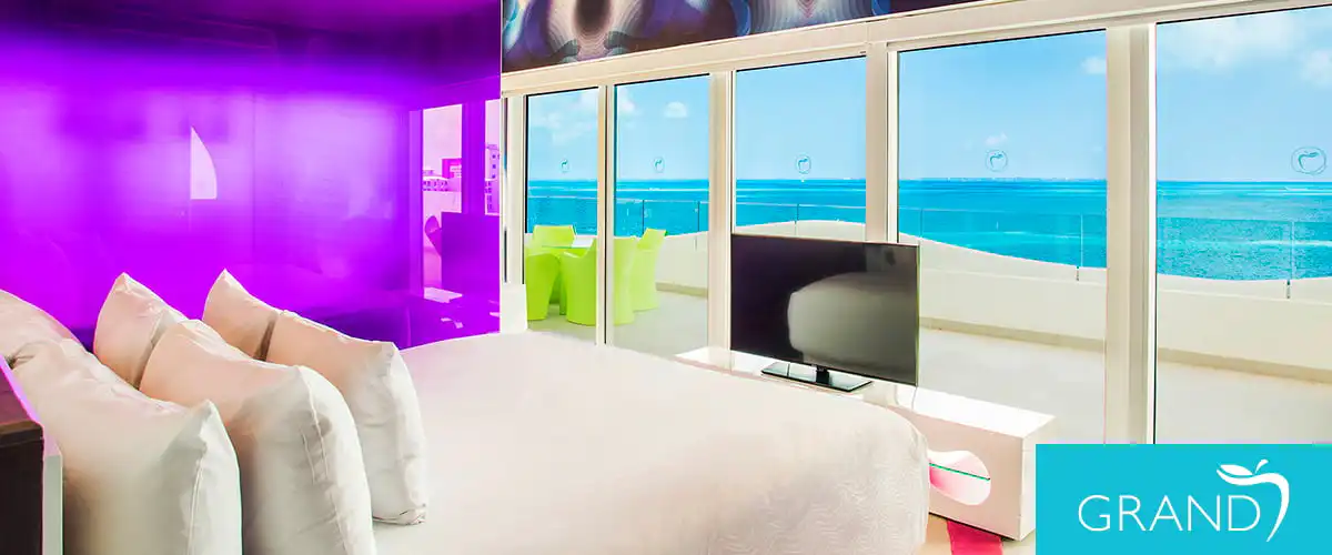 Welcome to our spectacular suites located in the center section of The Tower, on the upper levels. Enjoy the comfort of a living area with LED TV, an oversized balcony with jacuzzi for two, and outdoor sitting area. Pool and beach concierge services are included.
